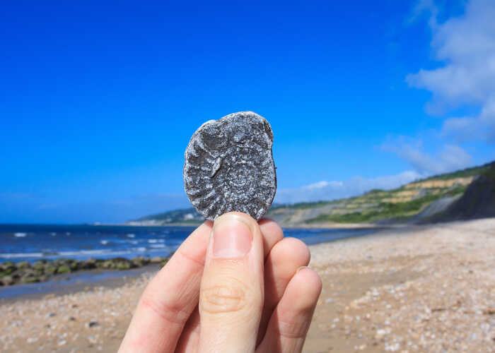 These coiled shell fossils are one of the most common finds along the Jurassic Coast. Ammonites were marine molluscs that lived in the ancient seas and are known for their intricate spiral shapes.